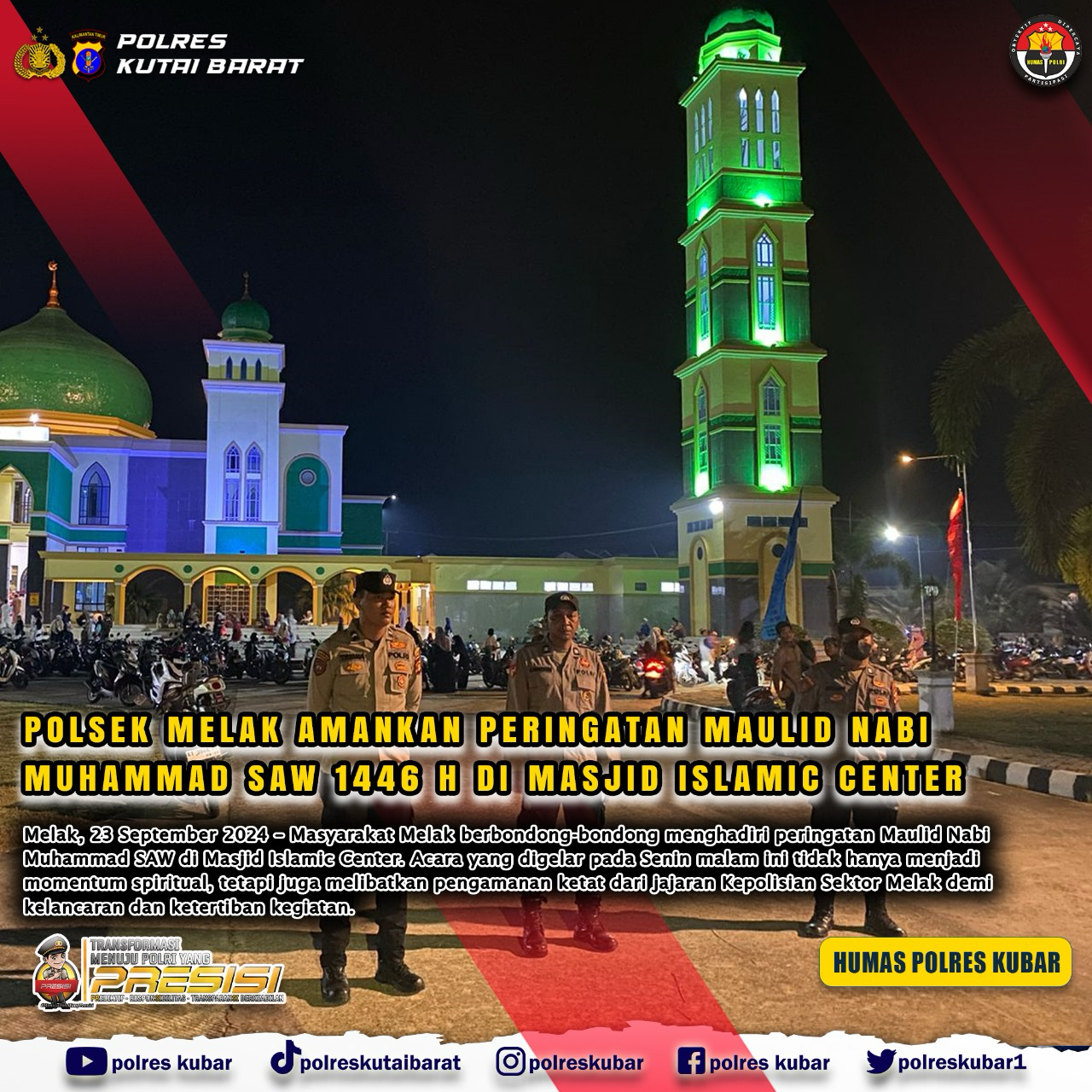 Pengamanan yang dilakukan menunjukkan komitmen Polsek Melak dalam menjaga ketenangan umat selama peringatan hari besar keagamaan ini, sehingga masyarakat dapat melaksanakan ibadah dengan khusyuk dan damai. Semoga peringatan Maulid Nabi ini membawa berkah, meningkatkan keimanan, serta mempererat tali silaturahmi di antara umat Muslim di Melak.
