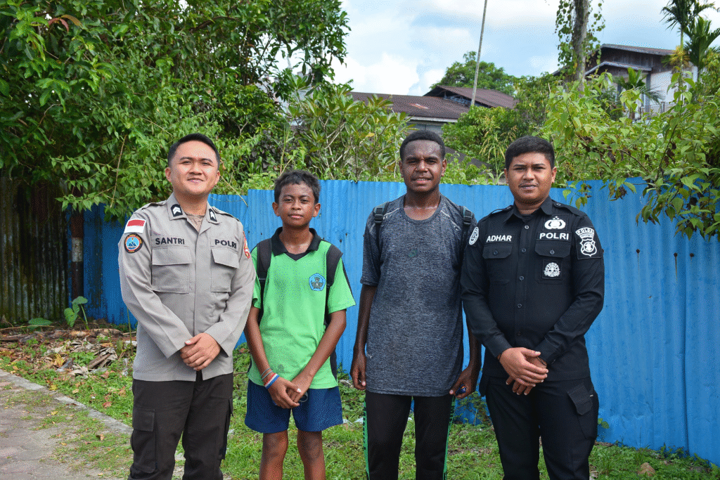 Mimika, Papua – Kepedulian terhadap generasi muda Papua terus ditunjukkan oleh Satgas Operasi Damai Cartenz-2025. Pada Rabu (30/4/2025) pukul 15.00 WIT, dua personel dari Satgas Humas, Briptu Santriawan, S.H. dan Bripda Adharmansyah, menggelar kegiatan dialogis dengan menyapa anak-anak sekolah di Jl. Cenderawasih, Kabupaten Mimika.