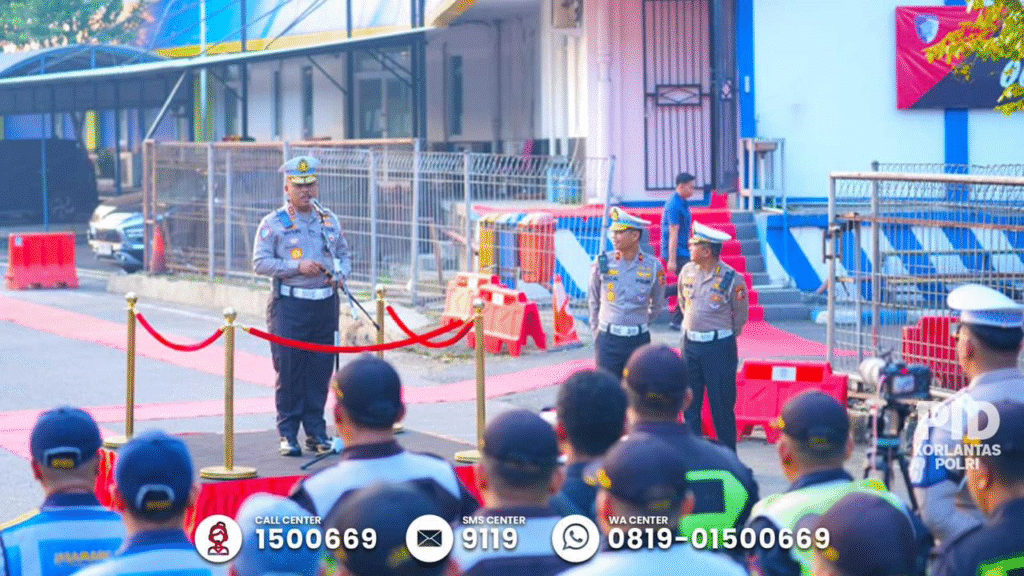 KORLANTAS POLRI, Cikampek. Kepala Korps Lalu Lintas (Kakorlantas) Polri Irjen Pol Drs. Agus Suryonugroho S.H memimpin apel pagi di Kantor Induk PJR Cikampek, Jawa Barat, Kamis (1/5/2025). Kegiatan apel ini digelar dalam rangka memperingati May Day atau Hari Buruh.