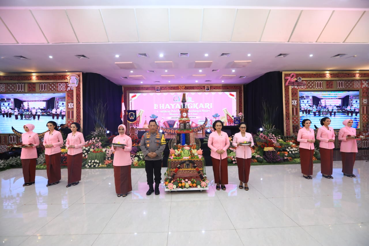 Hadir dalam acara tersebut, Kapolri Jenderal Listyo Sigit Prabowo selaku Pembina Utama Bhayangkari bersama para pejabat utama Mabes Polri. Ketua Umum Bhayangkari Juliati Sigit Prabowo dalam sambutannya, meminta Bhayangkari terus mendukung tugas suami yang bertugas memberikan perlindungan, pengayoman dan pelayanan kepada masyarakat.
